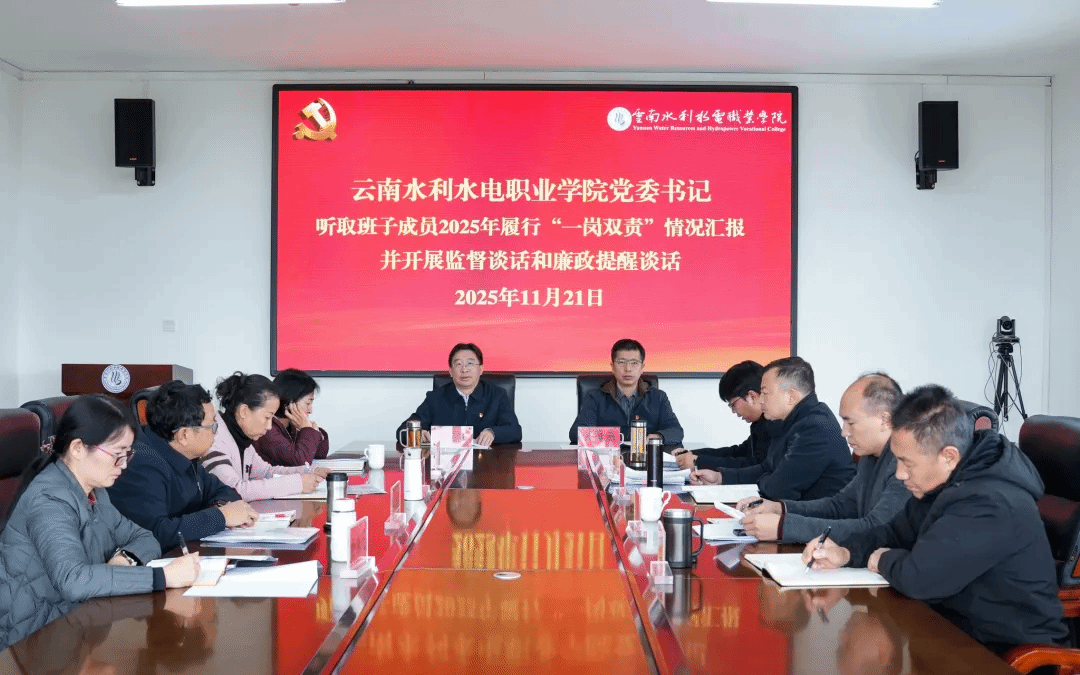 11月21日,学校党委书记马志宇主持召开2025年第41次党委会议,专题听取领导班子成员2025年履行“一岗双责”情况汇报并进行点评,对班子成员开展监督谈话和廉政提醒谈话。校党委副书记、校长黄海燕和班子成员出席会议。