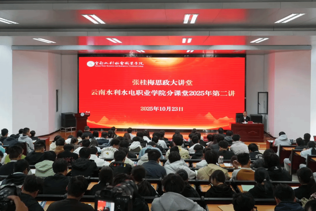 10月23日,我校举行“张桂梅思政大讲堂——云南水利水电职业学院分课堂”2025年第二讲。“云南省五一劳动奖章”获得者、我校优秀校友、云南省水文水资源局昭通分局党委委员、总工程师蒋德体担任主讲,校党委委员、副校长刘世剑主持,全校师生代表300余人现场参与。