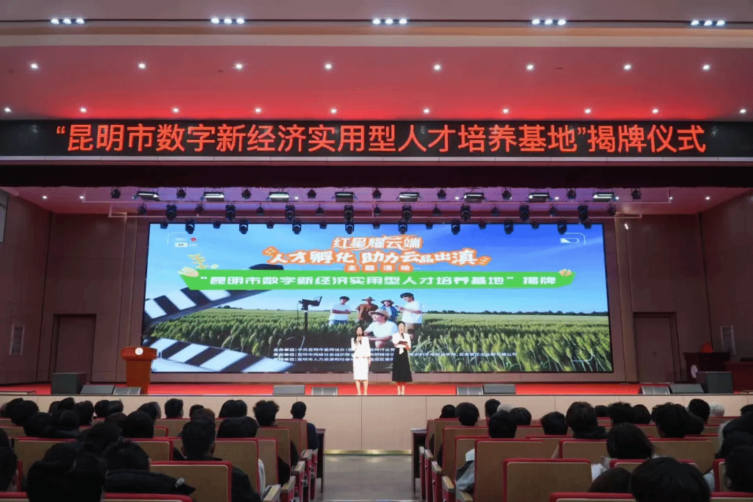 11月20日下午,“红星耀云端——助农e达人”主题活动暨“昆明市数字新经济实用型人才培养基地”揭牌仪式在我校蓝龙潭校区举行。活动作为我校建校70周年高质量发展系列活动预热活动,吸引了来自政府、企业、高校及媒体的300余位嘉宾代表与师生共聚一堂。我校党委副书记、校长黄海燕,昆明市委网信办副主任单红霞及云南民族大学等高校代表,多家企业负责人共同参与仪式。