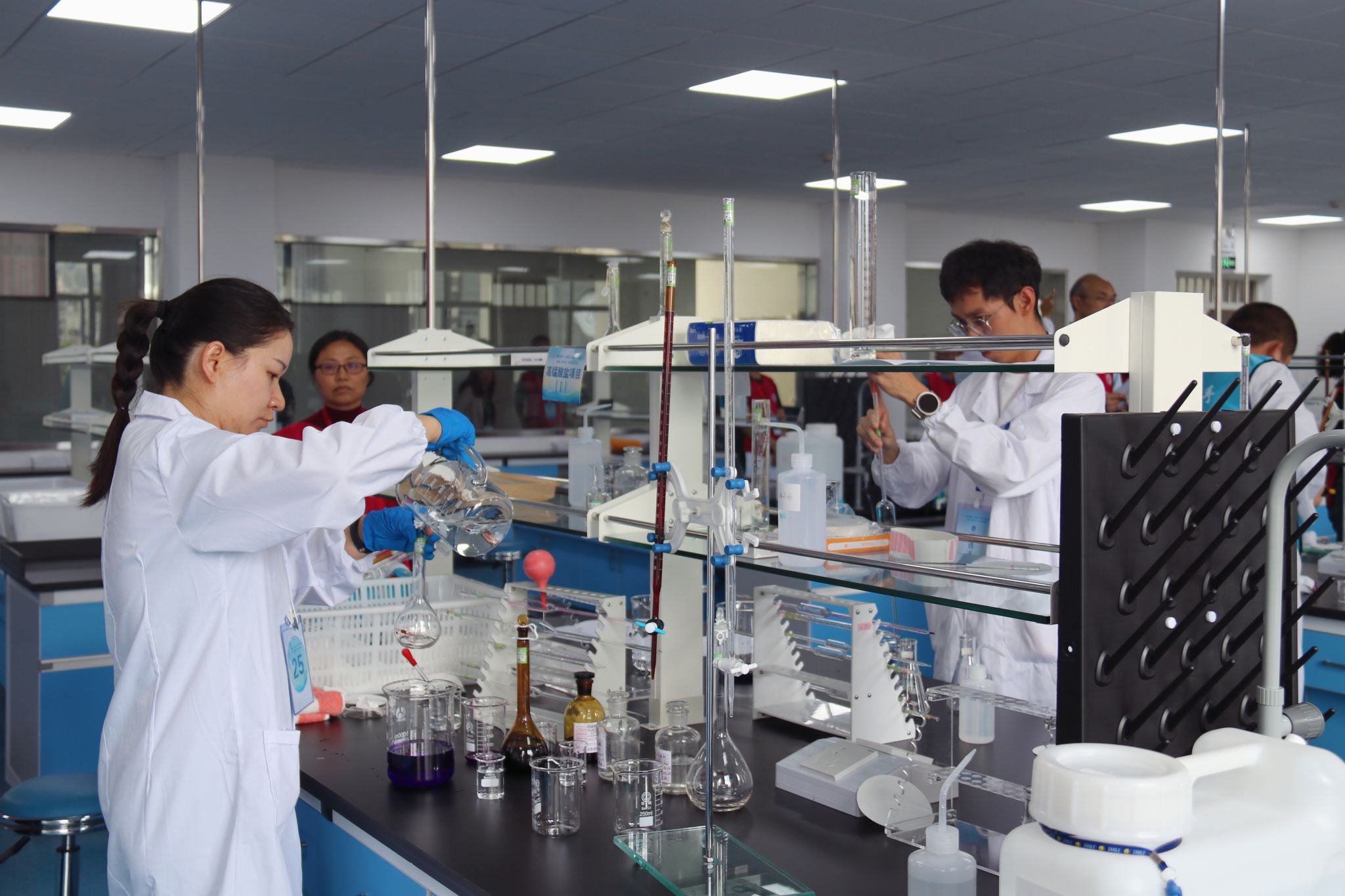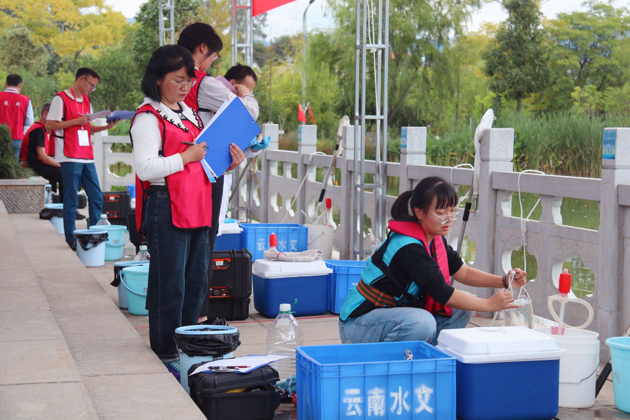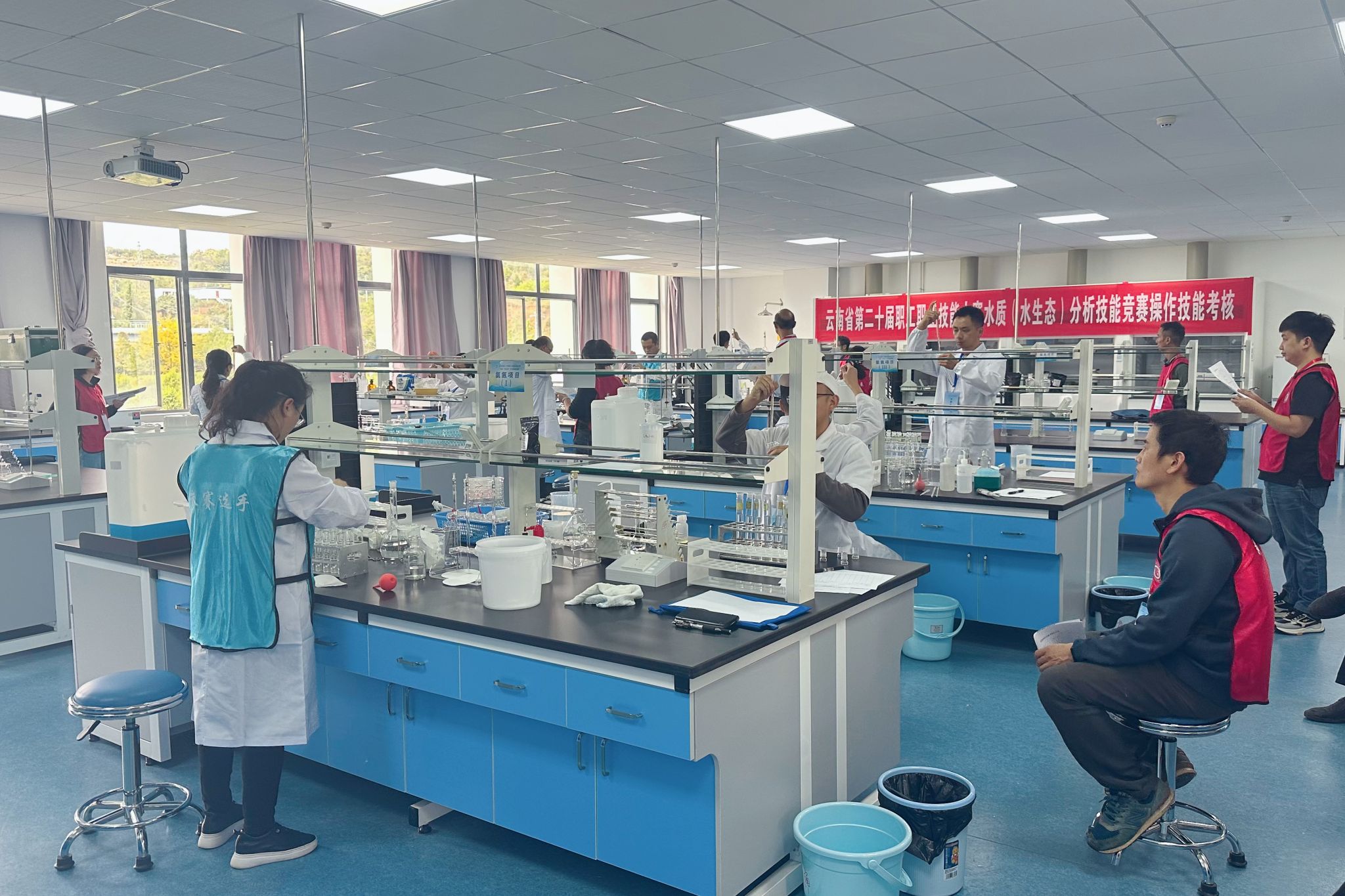 此次竞赛聚焦“匠心创造、技能兴滇”——练精兵提技能强本领,助力绿美河湖建设主题,竞赛主要内容分为理论知识考试和现场技能操作两部分,共有3项操作技能考核,主要涉及行业相关法律法规、水质水生态分析相关标准规范、基础知识和基本技能,水质水生生物样品、采集(含水温、pH 值、溶解氧现场测定)、高锰酸盐指数检测和氨氮检测。