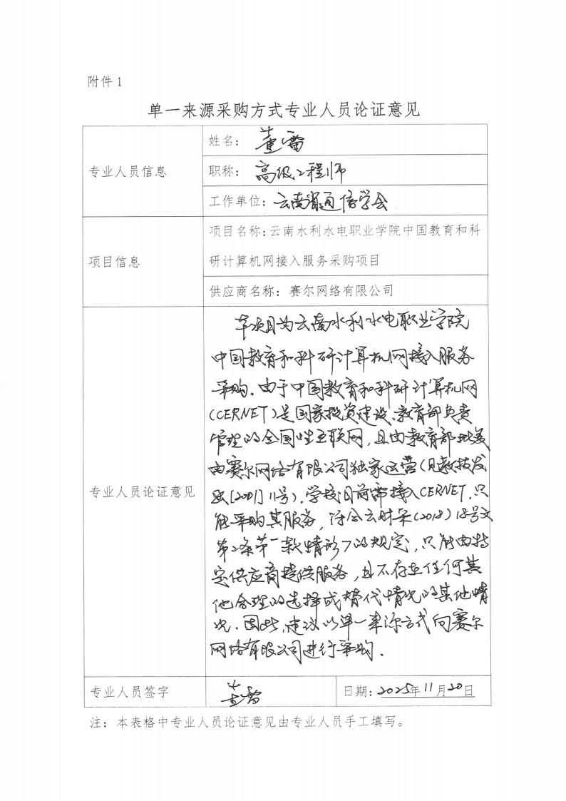 CERNET 管委会委托赛尔网络有限公司运营 CERNET 的批复》,赛尔网络作为唯一运营教育网(CERNET)的机构管理运营教育网,是唯一提供特色教育资源、充足的 IPv4/IPv6 地址和高招绿色安全保障的运营商,采购来源唯一。赛尔网络一直为云南水利水电职业学院提供教育网域名及配套服务,满足云南水利水电职业学院对教育信息及 IP 地址使