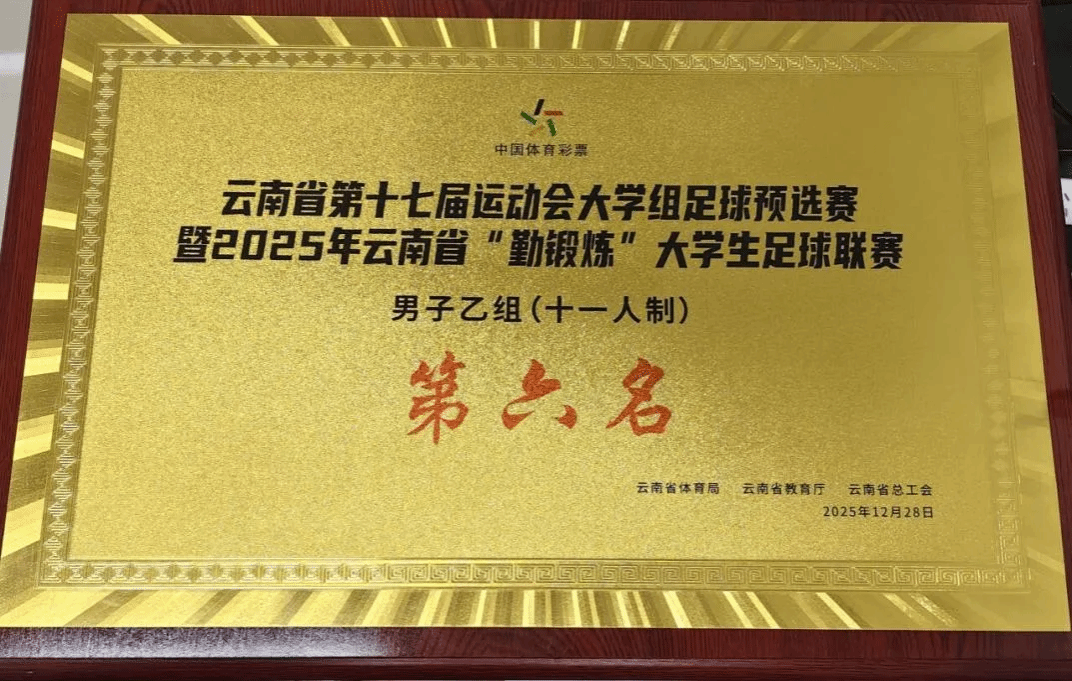 近日,由云南省教育厅、省体育局、省总工会联合主办的云南省第十七届运动会大学生足球预选赛暨“勤锻炼”大学生足球联赛在昆明举行。我校足球队团结拼搏、奋勇争先,从全省十三支参赛高校队伍中脱颖而出,以第六名的优异成绩成功晋级决赛,获得第十七届省运会大学生足球(11人制)决赛阶段的参赛资格。